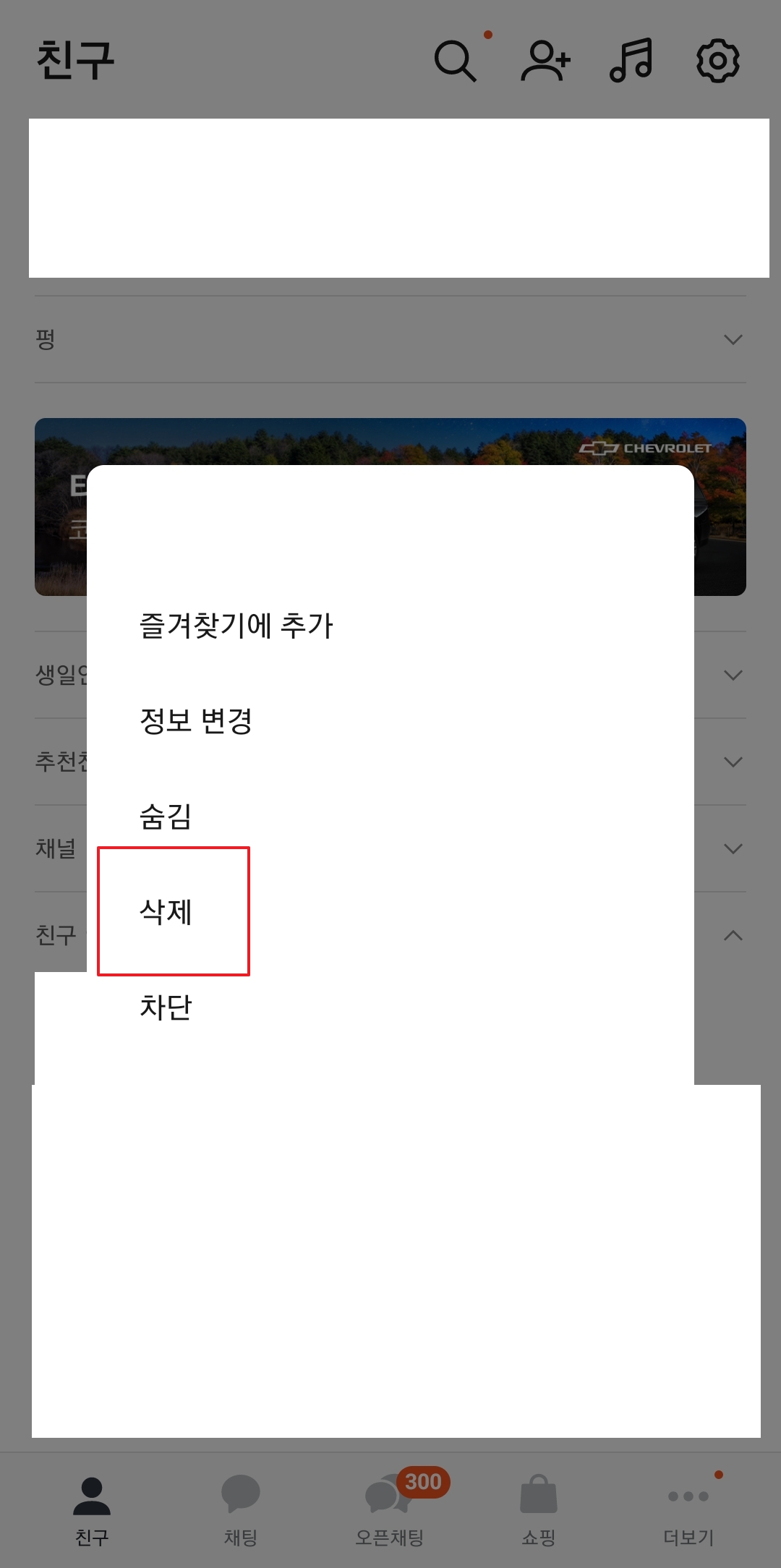 카톡 친구 삭제 방법