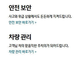 3. 메뉴를 아래로 쭉 내려보면 ‘안전 보안’과 ‘차량 관리’라는 항목이 나옵니다. 안전 보안 쪽에서는 긴급 상황 발생 시 차량에서 자동으로 도움을 요청하는 기능들이 자세히 설명되어 있고요, 차량 관리 메뉴에서는 운전 습관이나 정비 필요 여부 등을 체크할 수 있는 기능들이 소개되어 있어요. 저도 이걸 보고 나서 차량 점검 시기를 미리 알 수 있어서 훨씬 수월해졌습니다.