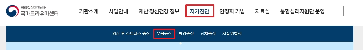 우울감이나 무기력감이 오래 지속되는지 점검해 보고 싶으시다면 국가트라우마센터 홈페이지에서 제공하는 우울증 자가진단 테스트가 도움이 됩니다. 이 테스트는 간단한 문항으로 구성되어 있어 지나치게 복잡하지 않으면서도 자신의 현재 상태를 가볍게 살펴볼 수 있도록 만들어졌습니다.