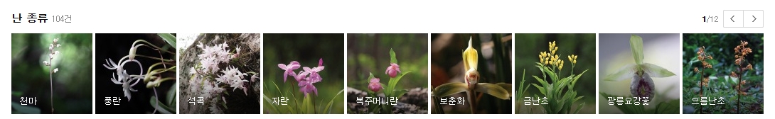 2. 검색창에 난초 종류를 입력하면 나나벌이난초, 타래난초속, 북주머니란류 같은 다양한 이름이 뜨는데요, 각각 다르게 생기고 특징도 달라서 보는 재미가 있어요. 이름만 들어도 궁금해지는 식물들이 많고, 사진을 함께 보면 더 흥미롭습니다.