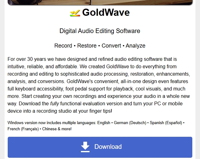 공식 홈페이지를 검색하여 접속하면, 가장 안전하게 골드웨이브를 다운로드할 수 있습니다. 사이트 상단의 ‘Download’ 또는 ‘Get GoldWave’ 버튼을 클릭하면, Windows 또는 macOS에 맞는 설치 파일을 선택할 수 있습니다. 체험판도 제공되므로, 사용 전 시험해볼 수 있습니다.