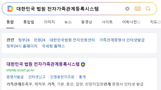 대한민국 법원 전자가족관계등록시스템 홈페이지로 들어갑니다. 이곳에서는 가족관계등록부, 제적부, 증명서 발급은 물론, 출생신고 이름 통계도 확인할 수 있어 이름 선택에 유용합니다.