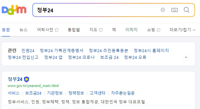 메인화면 상단의 검색창에 '농업경영체 등록 확인서'를 입력하면 관련 민원 목록이 나타납니다. 검색어는 정확히 입력해야 원하는 서비스를 빠르게 찾을 수 있습니다.