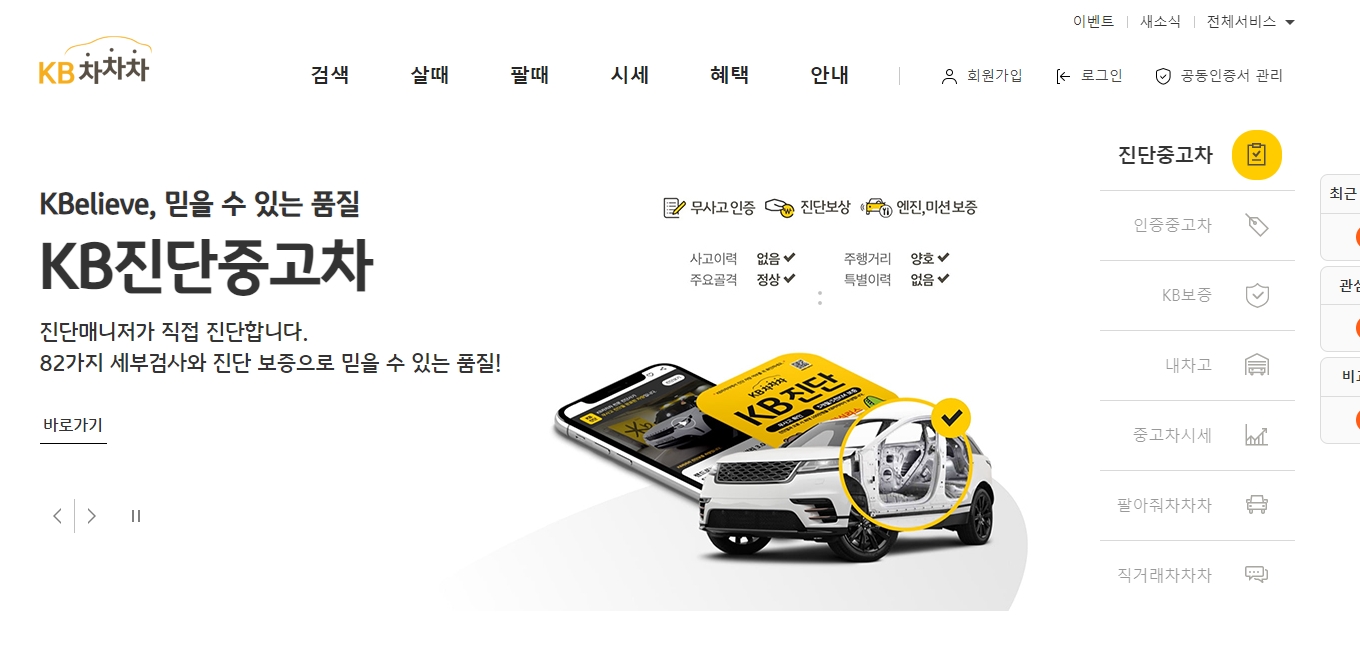 중고차 kb 국민 차차차 홈페이지 (www.kbchachacha.com)
