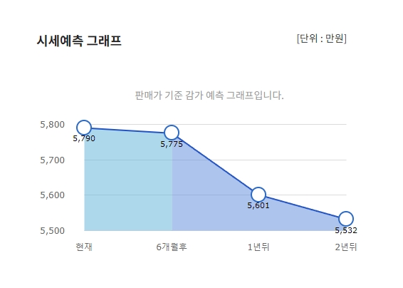 그래프 형태로 미래 시세 변동을 예측할 수 있는 기능도 있습니다. 다만, 예측치가 현실과 조금 다를 수도 있으니 참고용으로 활용하는 것이 좋아요.