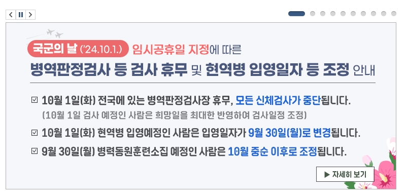 병무청 누리집 홈페이지는 입영 신청뿐만 아니라 병역 판정 검사, 민원 처리, 병역 이행 관련 정보를 확인하고 처리하는 데 꼭 필요한 공간입니다. 특히 국군의 날 휴무, 입영일자 변경, 병무 민원 처리 방법 등 실질적인 정보들이 정리되어 있어, 병역 대상자나 복무자들에게 매우 유용하게 활용될 수 있어요.