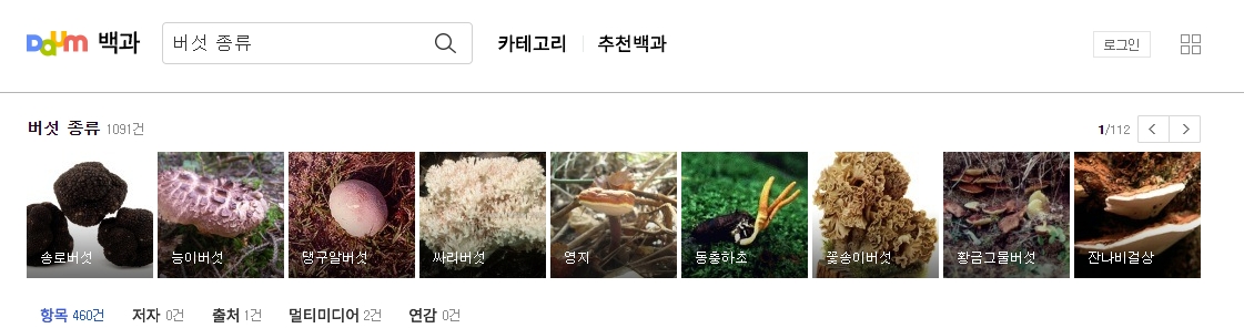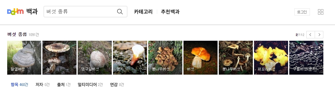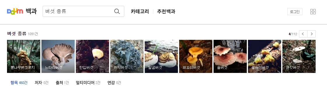 다음백과 홈페이지로 들어가면, 다양한 식용 및 비식용 버섯들의 이름과 사진을 확인할 수 있습니다. 특히 각 버섯의 생김새나 주요 특징, 자생 환경 등이 간단하게 정리되어 있어서, 버섯을 구분하는 데 많은 도움이 됩니다.