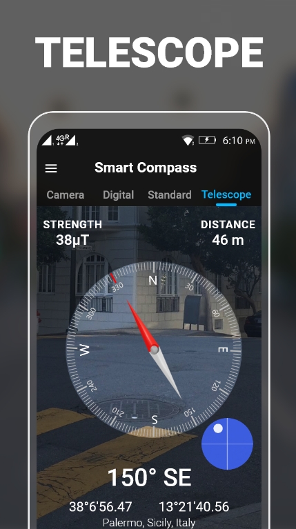 7. 증강현실(AR) 모드를 지원하는 앱을 선택하면 실제 환경 위에 방향 표시가 겹쳐져 야외 활동 시 매우 편리합니다. 특히 화면에 나침반 화살표가 실시간으로 회전하며 표시되어 길 찾기를 한층 더 수월하게 도와줍니다.