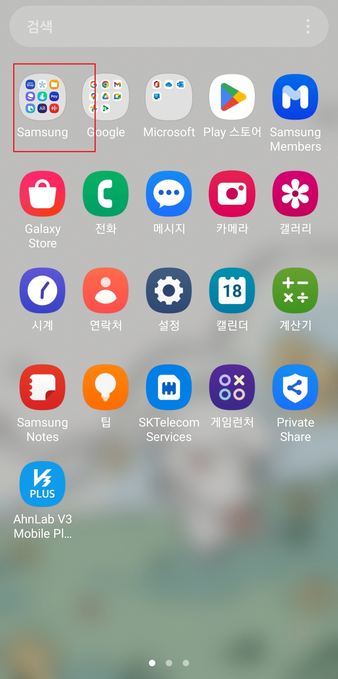 가장 먼저 갤럭시 휴대폰 바탕화면을 한번 봐주세요. 여러 앱들 중에서 Samsung 폴더라고 영어로 쓰여있는 폴더를 찾아서 눌러주면 된답니다. 이 폴더는 삼성에서 만든 여러가지 편리한 기능들을 한 곳에 모아놓은 보물상자 같은 곳이에요. 그래서 우리가 지금 찾고 있는 통화 녹음 파일도 바로 여기에서부터 시작해야 찾을 수 있는거죠.