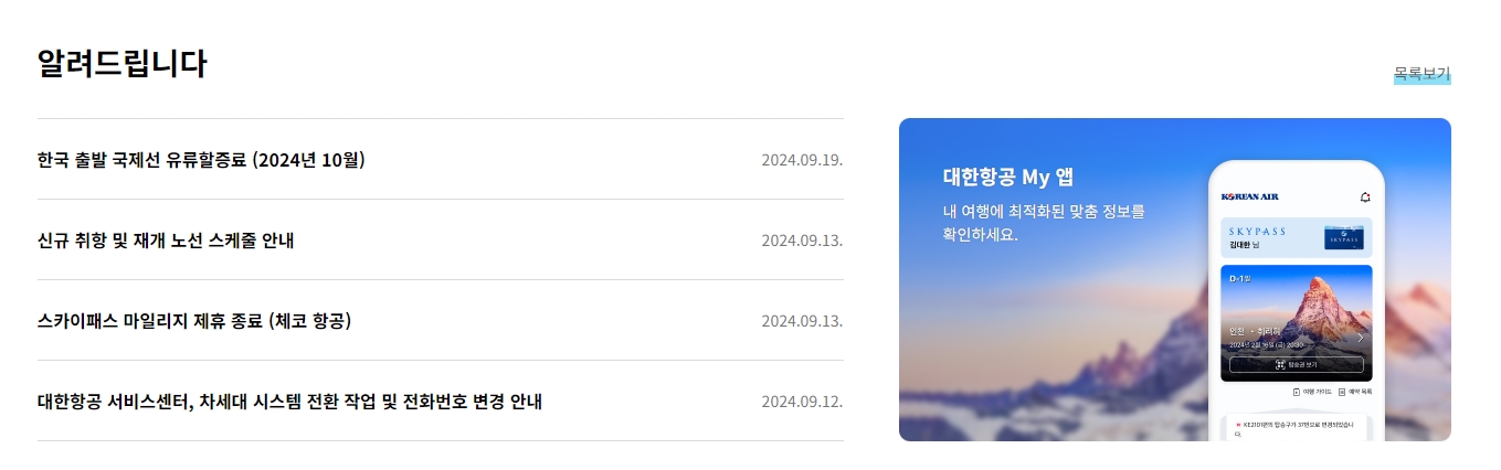 대한항공 홈페이지 바로가기