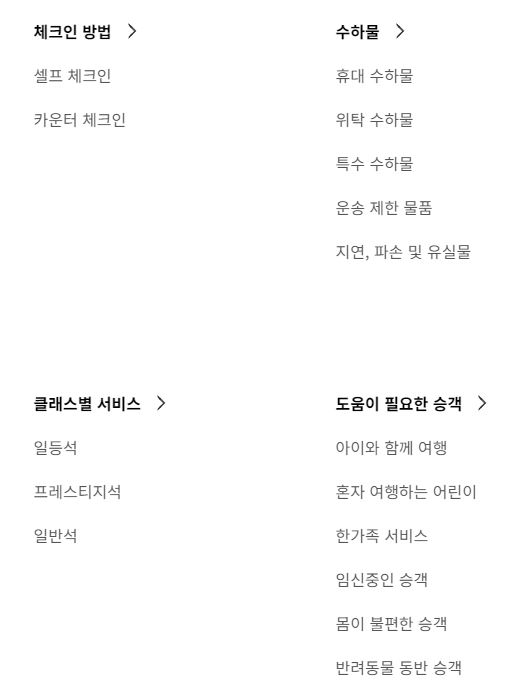 특별한 기내식을 먹고 싶을 때도 미리 신청해 둘 수 있어요. 짐이 많아서 추가 요금이 걱정될 때는 초과 수하물을 미리 구매해서 돈을 아낄 수도 있고, 사랑하는 반려동물과 함께 여행을 떠나고 싶을 때도 여기서 신청하면 된답니다.