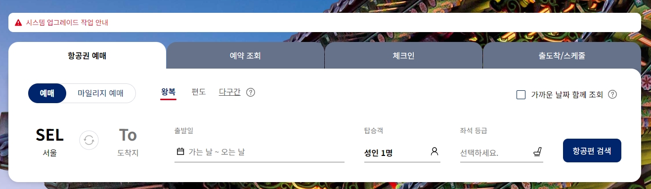 여행을 가려면 가장 먼저 비행기 표를 구해야 하잖아요. 바로 이 '예약 및 관리' 메뉴에서 모든 걸 해결할 수 있어요. 일반적인 항공권 예매는 물론이고, 그동안 모아둔 마일리지를 사용해서 보너스 항공권을 구하는 것도 가능하답니다.