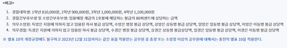 봉급표에는 현직 경찰뿐만 아니라 예비 경찰들에 대한 정보도 담겨있습니다. 경찰대학생의 경우 1학년은 81만원에서 시작해서 학년이 올라갈수록 월급이 올라 4학년이 되면 110만원을 받게 되네요.