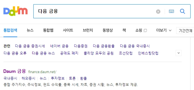 고배당 주식의 순위를 확인하기 위해서는 먼저 검색 엔진을 이용해서 다음 금융이라고 검색을 한 뒤에 나타나는 결과에서 제일 위에 있는 곳으로 들어가주시면 됩니다. 다른 복잡한 과정 없이 검색 한 번으로 바로 관련 정보를 볼 수 있는 곳으로 이동할 수 있어서 정말 편리하답니다.