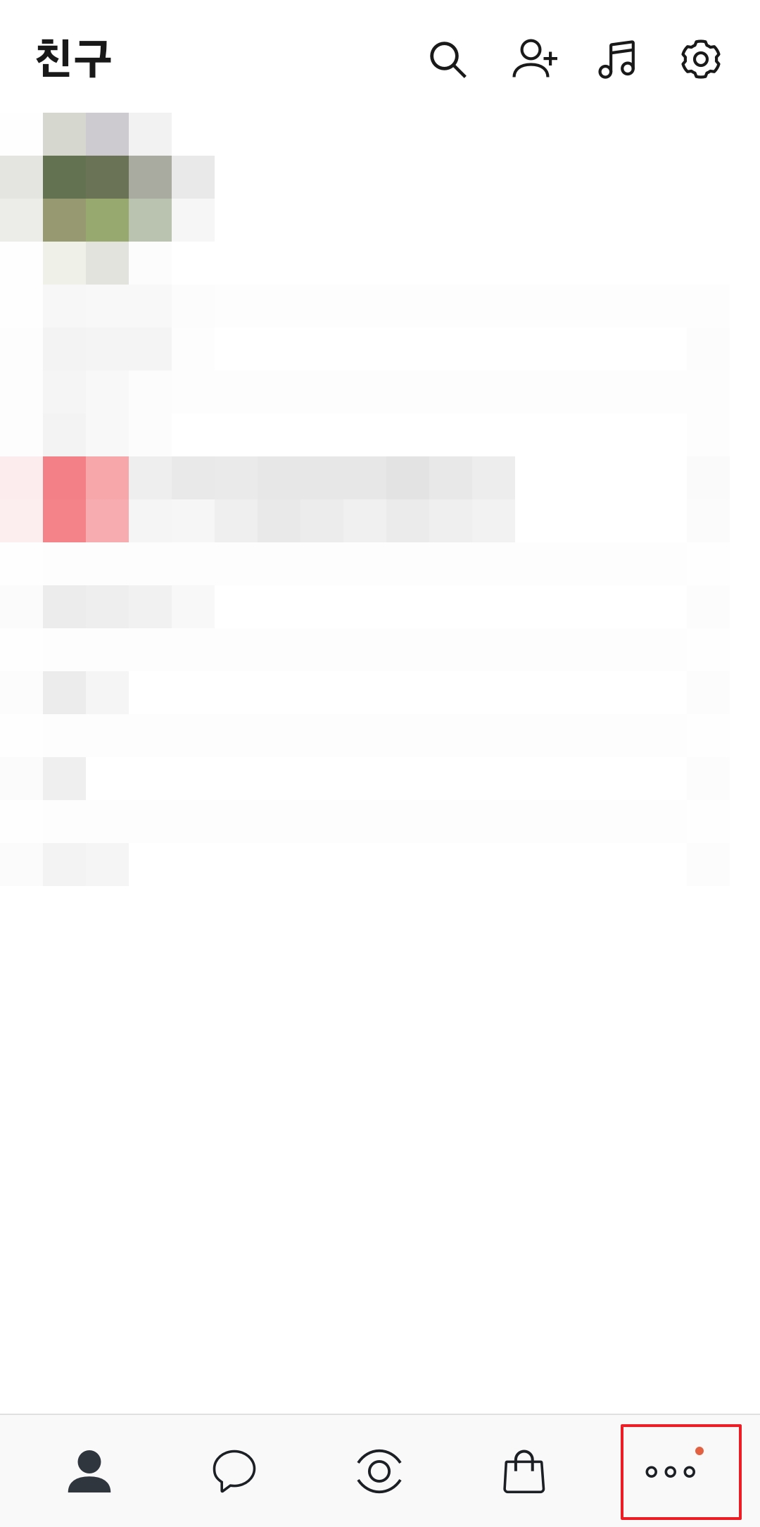 카카오페이에 카드를 등록하는 절차는 생각보다 아주 간단합니다. 먼저 우리가 매일 사용하는 카카오톡 앱을 실행해주세요. 앱을 켜고 오른쪽 제일 아래를 보면 점 세 개가 찍힌 '더보기' 버튼이 보일 거예요. 이 버튼을 눌러주세요.