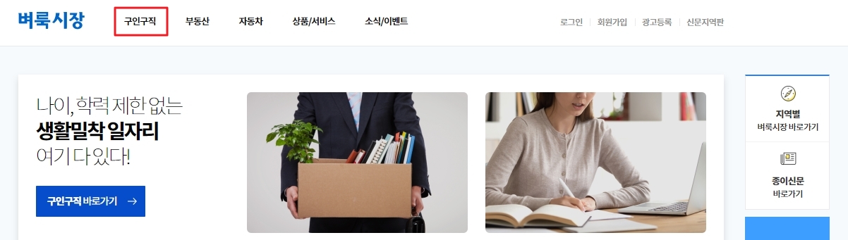 온라인으로 부산 벼룩시장 구인구직 정보를 찾기 위해서는 먼저 벼룩시장 사이트로 들어가야 합니다. 포털에서 '벼룩시장'을 검색하여 공식 사이트로 접속한 뒤, 화면 위쪽에 보이는 여러 메뉴 중에서 '구인구직' 항목을 선택하면 일자리를 찾아볼 준비가 끝납니다.