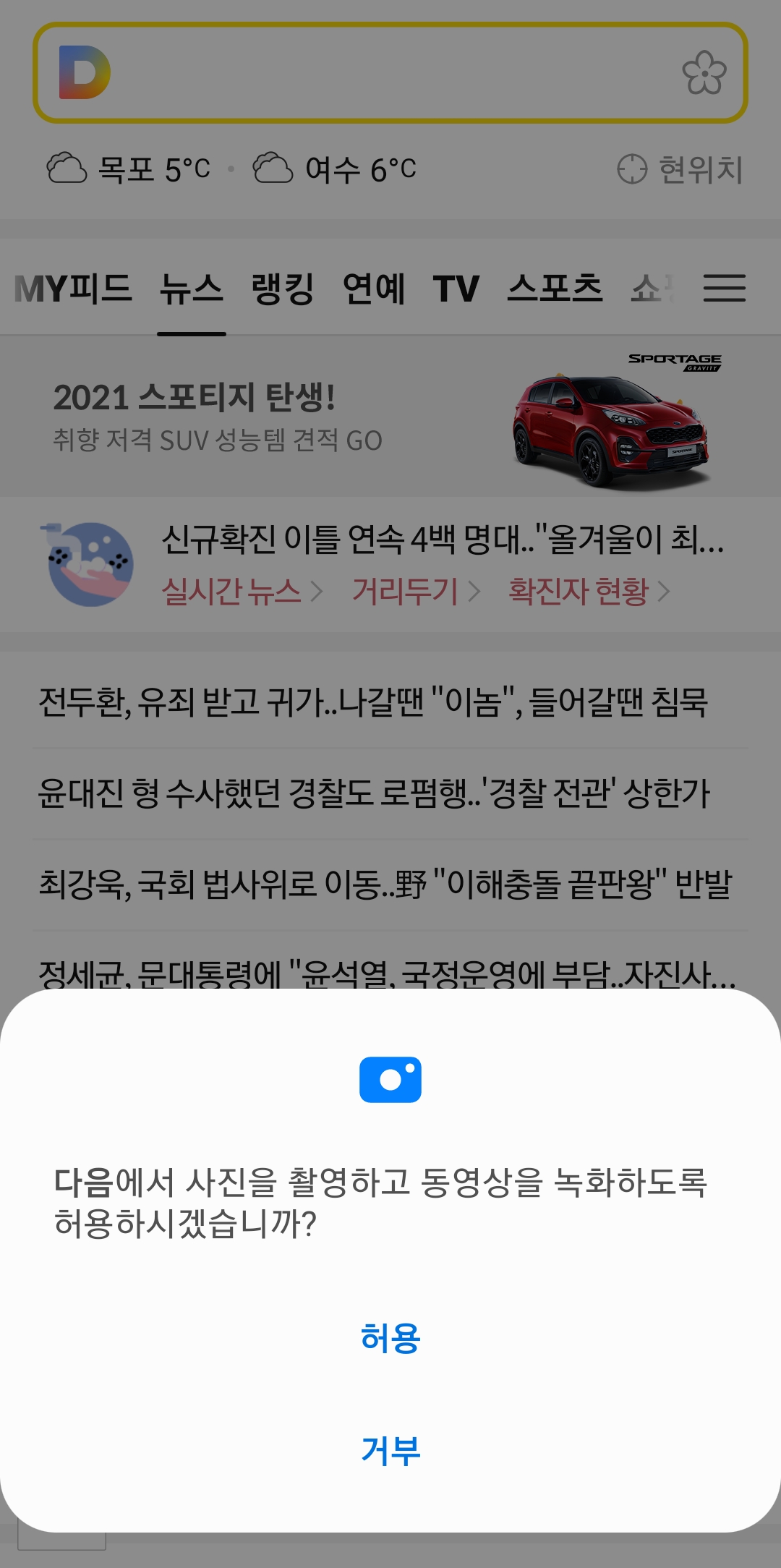 꽃검색 기능을 실행하면 카메라가 활성화됩니다. '앱 사용 중에만 허용'을 선택하여 카메라 접근 권한을 부여해주세요. 이제 이름을 알고 싶은 식물을 화면 중앙에 잘 맞춰서 선명하게 촬영하면 됩니다. 초점이 흐릿하거나 배경이 너무 복잡하면 인식률이 떨어질 수 있으니, 최대한 꽃이나 잎이 잘 보이도록 찍는 것이 좋습니다.