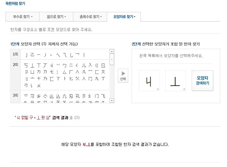 모양자 찾기는 온라인 사전의 편리한 기능 중 하나로, 한자에 포함된 특정 모양을 선택하여 검색하는 방식입니다. 예를 들어, 찾고자 하는 한자에 '木(나무 목)'과 '口(입 구)'가 모두 포함된 것을 안다면, 모양자 목록에서 이 두 글자를 선택하여 검색 결과를 좁힐 수 있습니다.