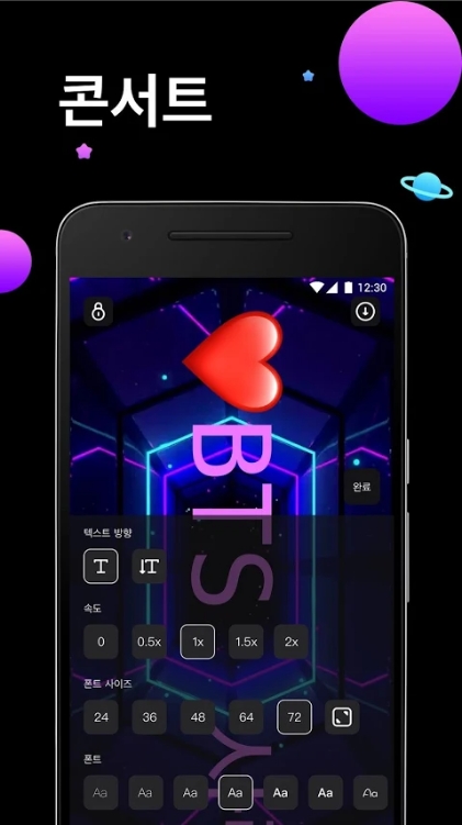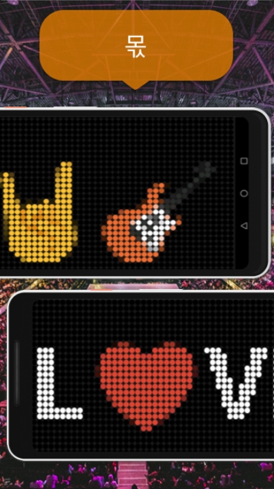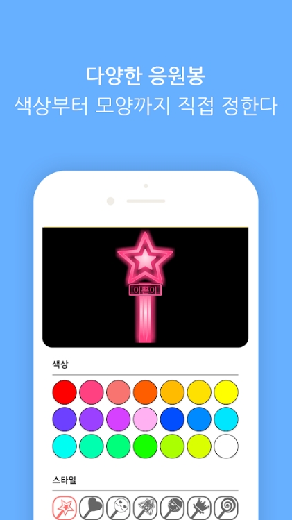 다른 앱들과는 조금 다른 독특한 기능이 있어서 눈길을 끄는 앱입니다. 단순히 글자만 보여주는 것이 아니라, 응원봉 모양의 이미지 안에 원하는 문구를 넣어 보여주는 방식이에요.