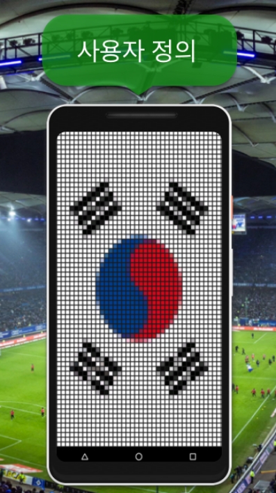 기본적으로 제공되는 디자인을 선택할 수도 있지만, 이 앱의 진정한 매력은 역시 직접 도트를 찍어 세상에 하나뿐인 결과물을 만드는 데 있습니다. 태극기 이미지처럼 정교한 그림을 직접 그려서 화면에 띄울 수 있죠.