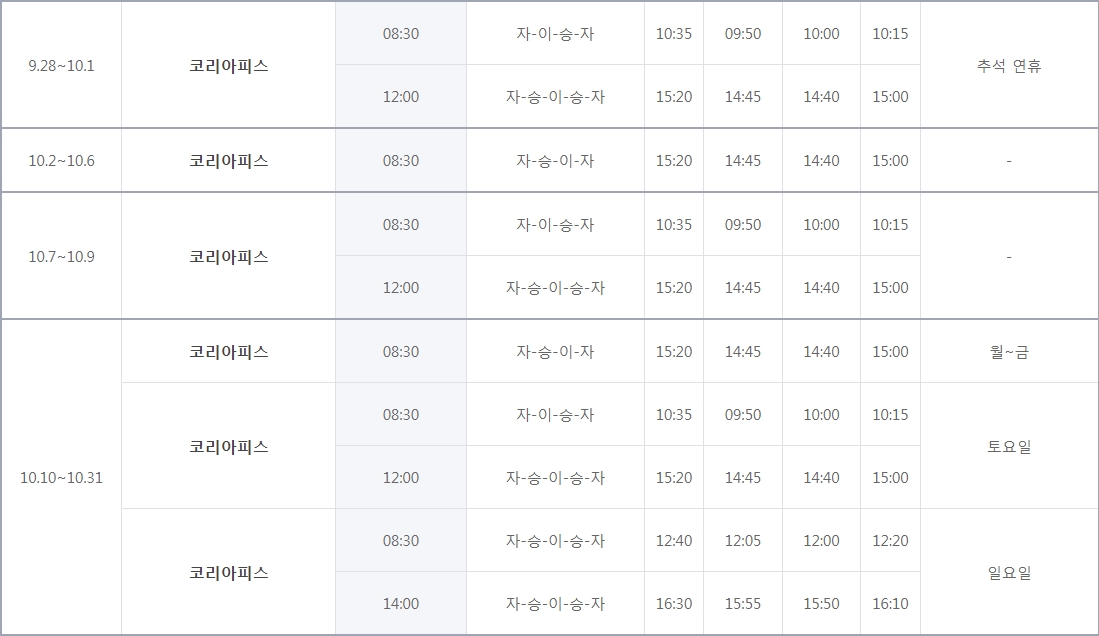 미리 여행 계획 세우시는 분들은 '다음달 시간표' 탭을 눌러서 참고하시면 좋겠죠? 보통 큰 변동은 없지만, 그래도 확정된 건 아니니 참고용으로만 보세요.