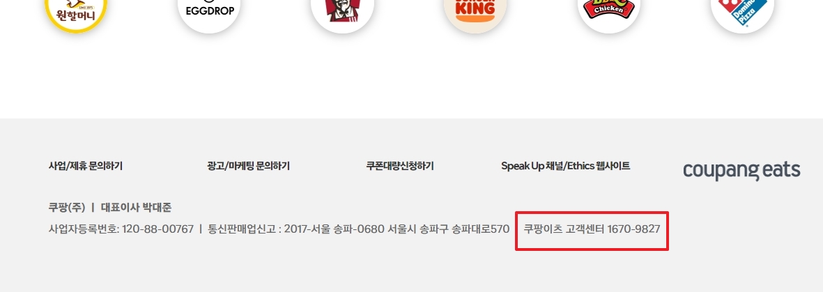 화면 맨 아래를 보면 '고객센터'라고 쓰인 부분이 보이죠. 바로 그 옆에 1670-9827이라고 번호가 적혀있어요. 이게 바로 우리가 찾던 쿠팡이츠 고객센터 전화번호예요. 생각보다 찾기 간단하죠?